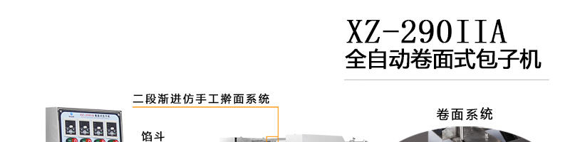 XZ-290IIA包子機(jī),可生產(chǎn)各種不同餡料的包子、各式包餡食品,如豆沙包、南瓜餅、肉包、小籠包、水晶包等幾十種包餡制品。適用于個(gè)體戶(hù)、食品廠、學(xué)校等單位食堂??蓾M(mǎn)足不同客戶(hù)群體。免費(fèi)提供工藝技術(shù)。