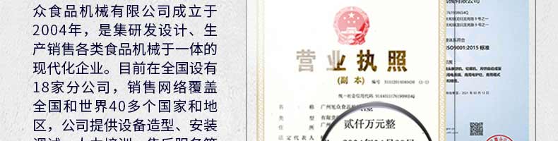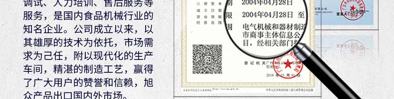 廣州旭眾食品機(jī)械有限公司是一家集科研開發(fā),生產(chǎn)設(shè)計,營銷服務(wù)為一體的現(xiàn)代化生產(chǎn)企業(yè)?,F(xiàn)代化生產(chǎn)車間,精湛制造技術(shù),所產(chǎn)機(jī)械歷經(jīng)市場重重考驗,不斷贏得海內(nèi)外客戶的贊譽(yù)。