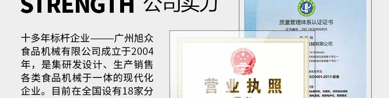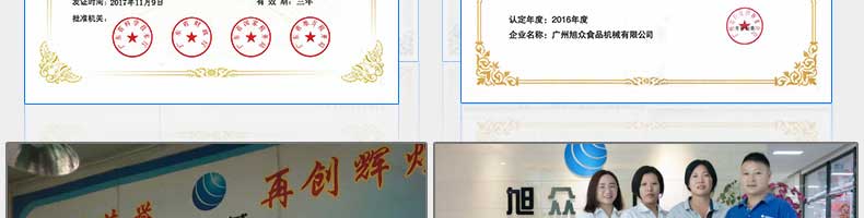 廣州旭眾食品機(jī)械有限公司是一家集科研開(kāi)發(fā),生產(chǎn)設(shè)計(jì),營(yíng)銷(xiāo)服務(wù)為一體的現(xiàn)代化生產(chǎn)企業(yè)?,F(xiàn)代化生產(chǎn)車(chē)間,精湛制造技術(shù),所產(chǎn)機(jī)械歷經(jīng)市場(chǎng)重重考驗(yàn),不斷贏得海內(nèi)外客戶的贊譽(yù)。