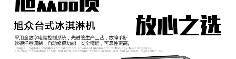 BQL-216T臺式冰淇淋機,●選用國際名牌成熟制冷配套件和高效壓縮機,融合旭眾精湛工藝輔以嚴(yán)格的質(zhì)量控制流程,使產(chǎn)品整體性能及品質(zhì)得以全面提升?!癫捎萌珨?shù)字電腦控制系統(tǒng),選用名牌優(yōu)質(zhì)電器元件,先進(jìn)的生產(chǎn)工藝,故障診斷,軟硬任意調(diào)制,自動修復(fù)功能,安全精確,可靠性更高。●專業(yè)成熟制冷系統(tǒng)設(shè)計,選用世界名牌大功率專用壓縮機,大大縮短冰淇淋成型時間,相同時間內(nèi)冰淇淋產(chǎn)量大幅度增加,使您生意火爆時依然得心應(yīng)手,為您創(chuàng)造財富?!癜踩椒€(wěn)的機械攪拌系統(tǒng),噪音更低、振動更小,使整機運行性能達(dá)到國際先進(jìn)水平?!翊_保進(jìn)料溫度在0°C~35°C;環(huán)境溫度5°C~40°C勻可正常使用。