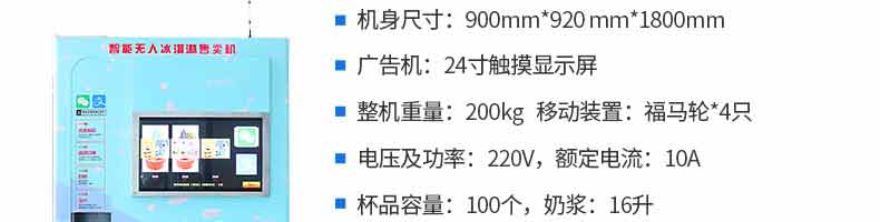 無人售貨冰淇淋機, 人工成本越來越高,無人店、無人售賣機必將是一個趨勢。簡單而又重復的勞動(售賣)必將被智能無人替代。無人售貨自助冰淇淋機支持多種支付方式,支持遠程監(jiān)管功能,支持預冷保鮮,支持多種口味混合,自動清洗少料報警。無需人工、場地無限制。