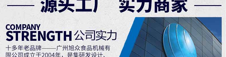 廣州旭眾食品機(jī)械有限公司是一家集科研開發(fā),生產(chǎn)設(shè)計(jì),營銷服務(wù)為一體的現(xiàn)代化生產(chǎn)企業(yè)?,F(xiàn)代化生產(chǎn)車間,精湛制造技術(shù),所產(chǎn)機(jī)械歷經(jīng)市場重重考驗(yàn),不斷贏得海內(nèi)外客戶的贊譽(yù)。