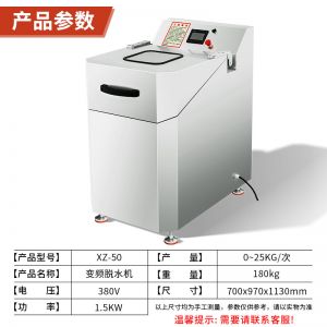 XZ-50型脫水機(jī),蔬菜脫水食品甩干,變頻控制、方便快捷。速度調(diào)頻,脫水速度可根據(jù)不同產(chǎn)品需求調(diào)節(jié)不同速度。鈑金機(jī)身,機(jī)架鈑金是 2MM 厚,使整機(jī)運(yùn)行時更穩(wěn)定,噪音更小。