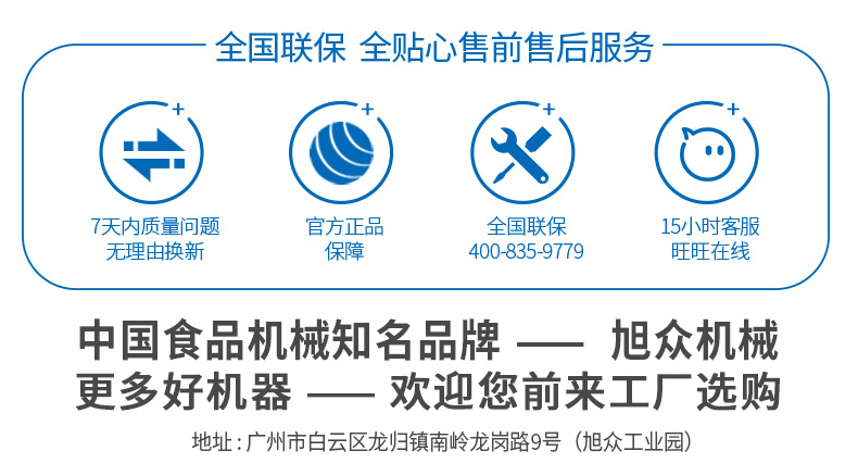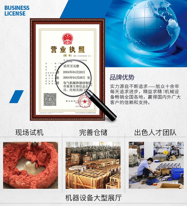 廣州旭眾食品機(jī)械有限公司是一家集科研開發(fā),生產(chǎn)設(shè)計,營銷服務(wù)為一體的現(xiàn)代化生產(chǎn)企業(yè)?,F(xiàn)代化生產(chǎn)車間,精湛制造技術(shù),所產(chǎn)機(jī)械歷經(jīng)市場重重考驗,不斷贏得海內(nèi)外客戶的贊譽(yù)。