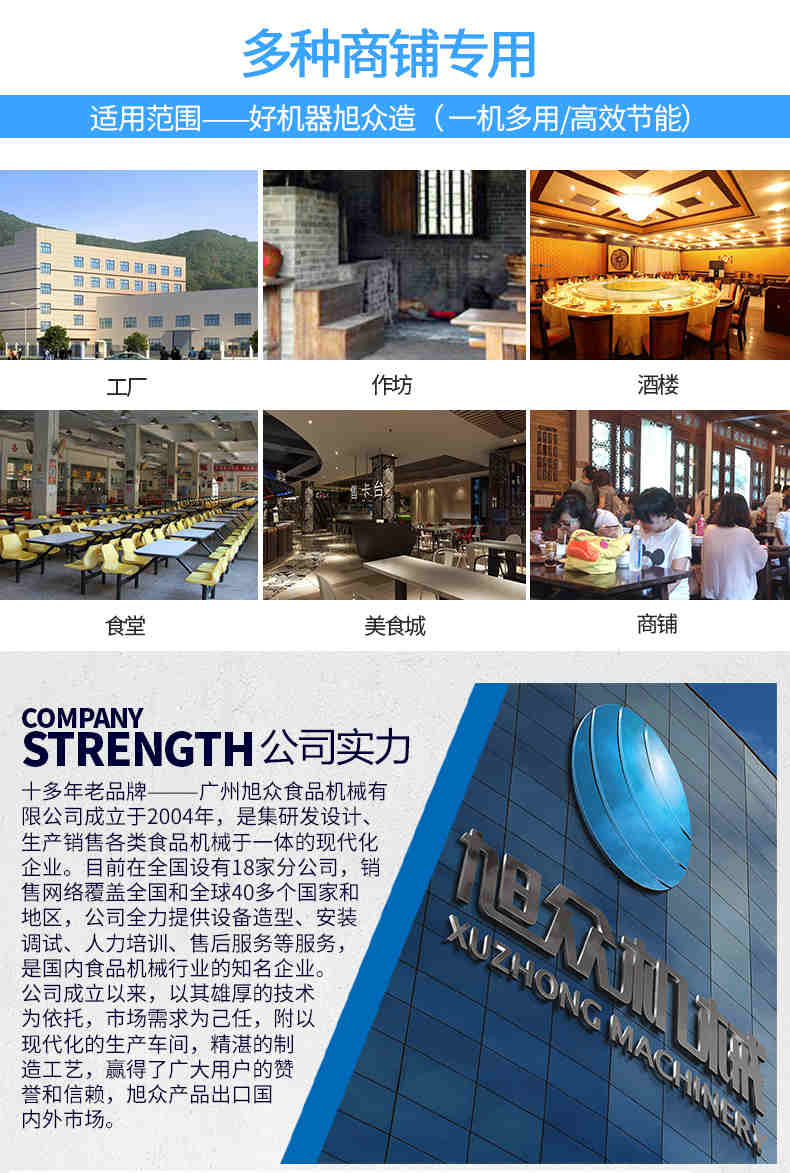 廣州旭眾食品機(jī)械有限公司是一家集科研開發(fā),生產(chǎn)設(shè)計(jì),營銷服務(wù)為一體的現(xiàn)代化生產(chǎn)企業(yè)?,F(xiàn)代化生產(chǎn)車間,精湛制造技術(shù),所產(chǎn)機(jī)械歷經(jīng)市場重重考驗(yàn),不斷贏得海內(nèi)外客戶的贊譽(yù)。
