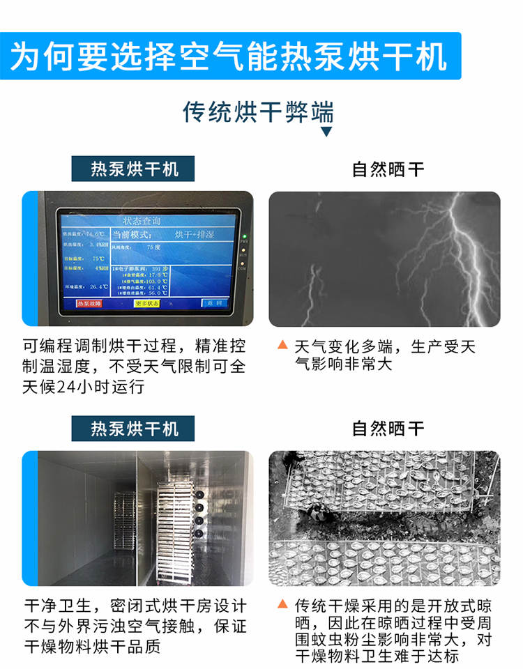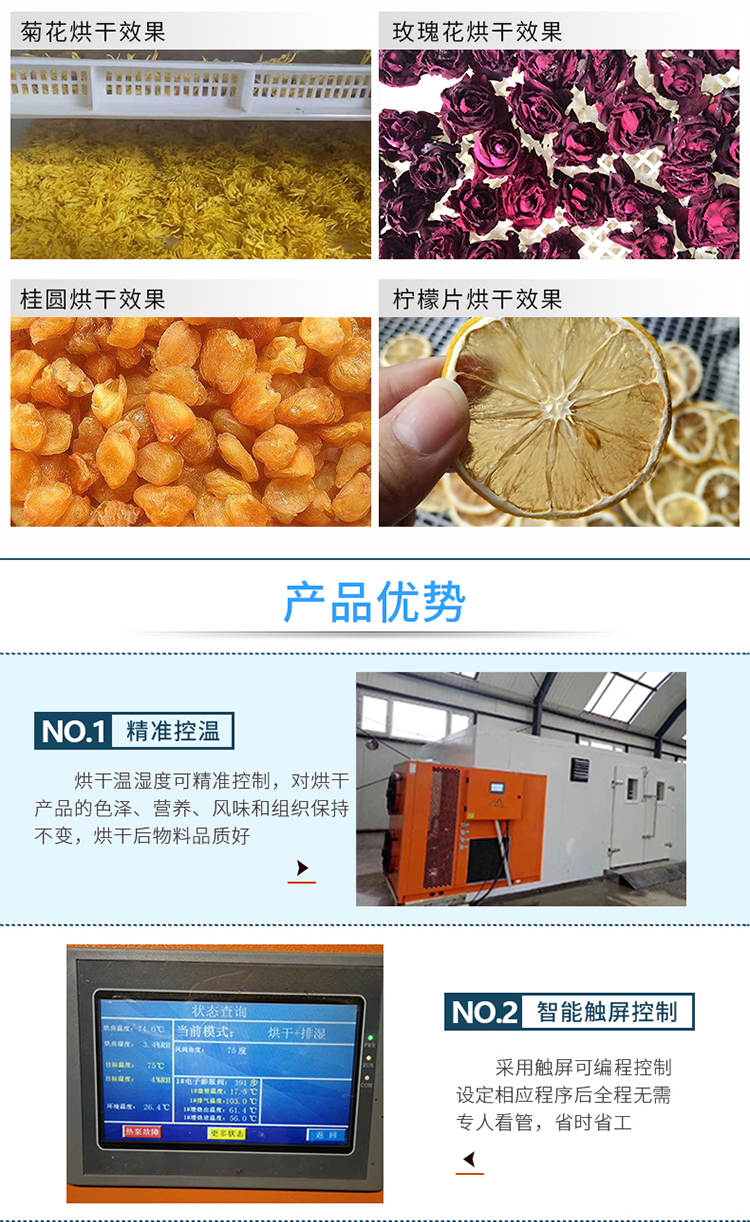030S-T-KD06空氣能烘干機(jī),可編程調(diào)制烘干過(guò)程,精準(zhǔn)控制溫濕度,不受天氣限制可全天候24小時(shí)運(yùn)行。干凈衛(wèi)生,密閉式烘干房設(shè)計(jì)不與外界污濁空氣接觸,保證干燥物料烘干品質(zhì)。高效節(jié)能,不用專人看守,可實(shí)現(xiàn)一人同時(shí)管理多間烘房減少人工費(fèi)用