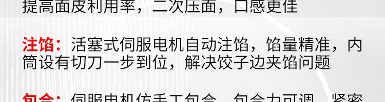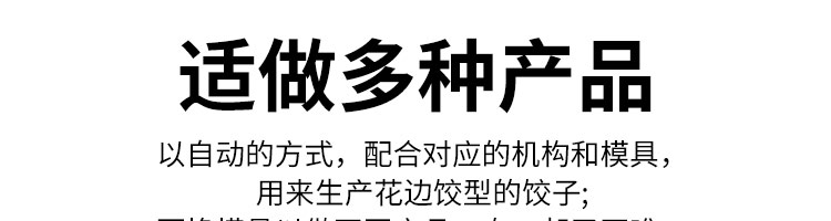JGB-10型一體式餃子機(jī),制皮成型一體餃子機(jī),科技化生產(chǎn)/人性化設(shè)計(jì)。餃型可蒸、可炸、可煮,可適應(yīng)不同場(chǎng)合的客戶(hù)需求。功能、智能一體,以自動(dòng)化科技與過(guò)硬質(zhì)量貼心服務(wù)。