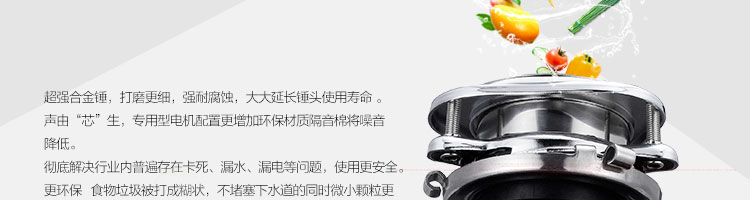 ACLQ37-廚房垃圾處理器,采用先進(jìn)的研磨系統(tǒng),采用特殊合金錘粉技術(shù),能根據(jù)垃圾的強度,自動調(diào)節(jié)工作位置,處理垃圾的范圍和細(xì)度優(yōu)良。能夠有效地將食物垃圾研磨成細(xì)小顆粒,直接從下水管道排出,從而實現(xiàn)及時方便快捷的廚房清潔,滿足現(xiàn)代健康家居的要求。