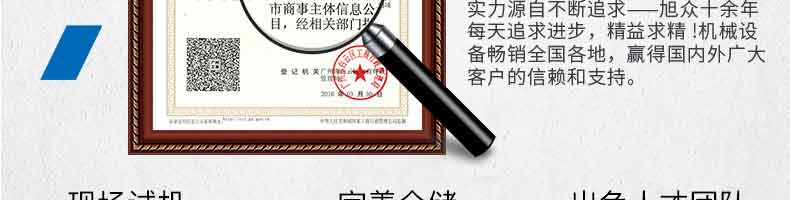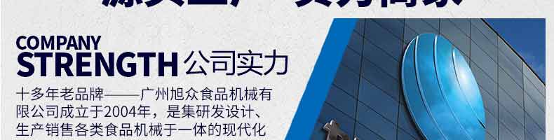 廣州旭眾食品機(jī)械有限公司是一家集科研開發(fā),生產(chǎn)設(shè)計(jì),營銷服務(wù)為一體的現(xiàn)代化生產(chǎn)企業(yè)?,F(xiàn)代化生產(chǎn)車間,精湛制造技術(shù),所產(chǎn)機(jī)械歷經(jīng)市場重重考驗(yàn),不斷贏得海內(nèi)外客戶的贊譽(yù)。