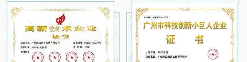 廣州旭眾食品機械有限公司是一家集科研開發(fā),生產(chǎn)設(shè)計,營銷服務(wù)為一體的現(xiàn)代化生產(chǎn)企業(yè)。現(xiàn)代化生產(chǎn)車間,精湛制造技術(shù),所產(chǎn)機械歷經(jīng)市場重重考驗,不斷贏得海內(nèi)外客戶的贊譽。