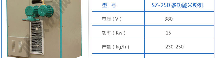 名稱SZ-250多功能米粉機(jī) 電源380V 功率15kw 產(chǎn)量230-250kg/h 尺寸1230*1100*1600mm 重量420kg 規(guī)格 其他
