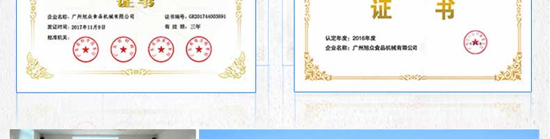 廣州旭眾食品機械有限公司是一家集科研開發(fā),生產(chǎn)設(shè)計,營銷服務(wù)為一體的現(xiàn)代化生產(chǎn)企業(yè)?,F(xiàn)代化生產(chǎn)車間,精湛制造技術(shù),所產(chǎn)機械歷經(jīng)市場重重考驗,不斷贏得海內(nèi)外客戶的贊譽。