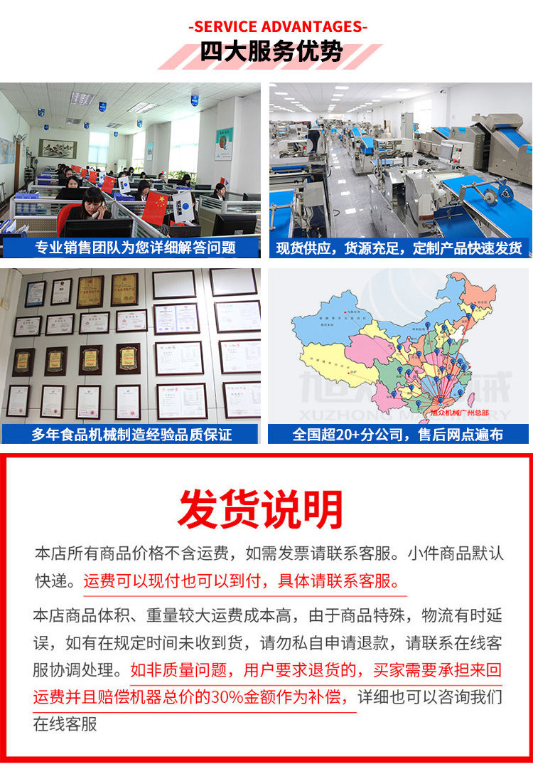 廣州旭眾食品機(jī)械有限公司是一家集科研開發(fā),生產(chǎn)設(shè)計,營銷服務(wù)為一體的現(xiàn)代化生產(chǎn)企業(yè)?,F(xiàn)代化生產(chǎn)車間,精湛制造技術(shù),所產(chǎn)機(jī)械歷經(jīng)市場重重考驗,不斷贏得海內(nèi)外客戶的贊譽(yù)。