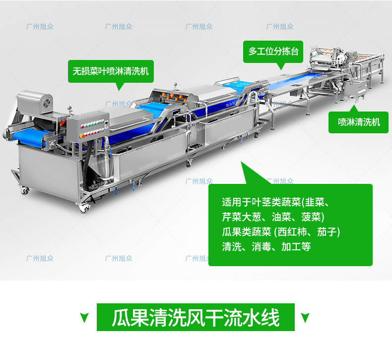 全自動(dòng)大型葉菜清洗線,自動(dòng)化程度高、整線設(shè)計(jì)合理、節(jié)約人工降低生產(chǎn)成本、外形美觀大方。主要用于葉菜加工,整線自動(dòng)化凈菜生產(chǎn)此線將切割、清洗、風(fēng)干設(shè)備連接成線,適合芹菜、韭菜菠菜、大白菜高麗菜、大蔥等葉菜類蔬菜加工生產(chǎn)