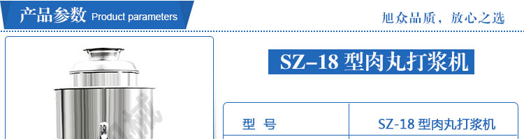 名稱SZ-18型肉丸打漿機(jī) 電源220v 功率0.75kw/1.5kw 產(chǎn)量2.3千克/小時(shí) / 4千克/小時(shí) 尺寸330*300*780mm / 330*330*800mm 重量21kg/30kg 規(guī)格 其他