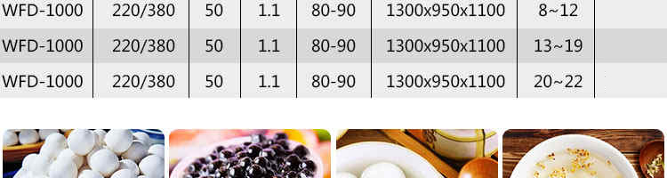 VFD-1000無(wú)餡湯圓機(jī),本機(jī)可生產(chǎn)無(wú)餡湯圓、珍珠湯圓、桂花湯圓、奶茶所用的珍珠、檳榔紅丸、工藝品等。規(guī)格有8-34mm,可根據(jù)客戶要求定制。適用于個(gè)體戶、食品廠、學(xué)校等單位食堂??蓾M足不同客戶群體。免費(fèi)提供工藝技術(shù)。