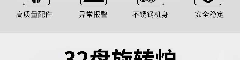 熱風旋轉(zhuǎn)爐系列,多項核心技術(shù)滿足您的需求大型熱風旋轉(zhuǎn)爐,雙風機設計,出口品質(zhì),準確調(diào)控,操作簡單。32盤旋轉(zhuǎn)爐大容量熱風旋轉(zhuǎn)爐,爐門釆用緊扣工藝,密封性更強,適合商用。