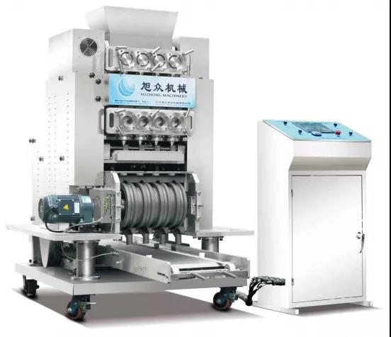 XZ4T-1502型多頭湯圓成型排盤機是一款依外皮及餡料的種類不同,可制作出湯圓、豆沙包、南瓜餅、奶黃包、含餡饅頭、玉兔包等包餡食品,并可自動排盤的設(shè)備。功能齊全,適用性廣,自動化程度高,定量準(zhǔn)確,操作簡單,只要將面團與餡料放入進料口,開機便可自動搓圓、成型,制品不易變形。