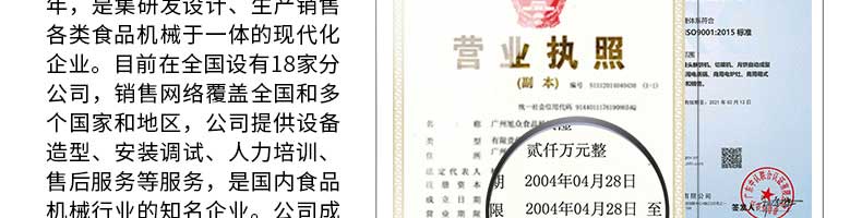 廣州旭眾食品機械有限公司是一家集科研開發(fā),生產(chǎn)設(shè)計,營銷服務(wù)為一體的現(xiàn)代化生產(chǎn)企業(yè)?,F(xiàn)代化生產(chǎn)車間,精湛制造技術(shù),所產(chǎn)機械歷經(jīng)市場重重考驗,不斷贏得海內(nèi)外客戶的贊譽。