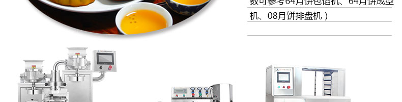 名稱月餅生產(chǎn)線 電源 功率 產(chǎn)量 尺寸 重量 規(guī)格 其他詳情參數(shù)請看SZ-64月餅成型機(jī),SZ-64多功能包餡機(jī),SZ-08型月餅自動(dòng)排盤機(jī)