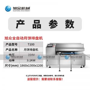 名稱T100月餅排盤機 電源220v 功率3.1kw 產(chǎn)量 尺寸1860*1300*1200mm 重量 規(guī)格 其他